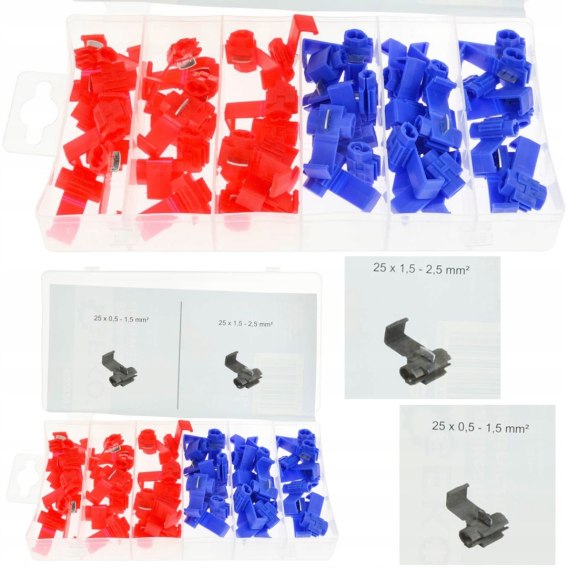 Konektory, szybkozłączki, zaciski do przewodów elektrycznych, 50 sztuk