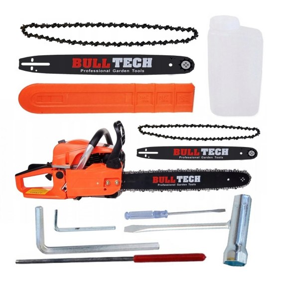 PIŁA ŁAŃCUCHOWA SPALINOWA 4.9 KM + 2x PROWADNICA 18'' + 2x ŁAŃCUCH BULL TEC