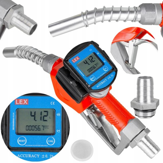 Nowoczesny i profesjonalny pistolet do pompy paliwa (mini CPN-ów) wyposażony w precyzyjny elektroniczny licznik przepływu i wyświetlacz LCD oraz w funkcję auto-stop, która odbija spust po napełnieniu zbiornika i nie pozwala na przelanie paliwa.