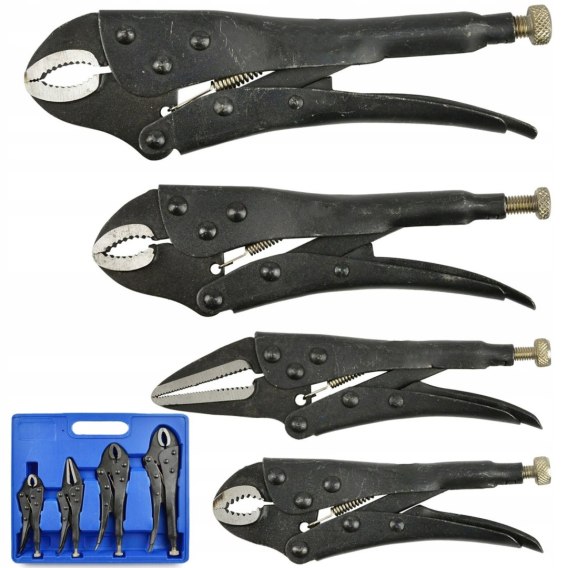 W skład zestawu wchodzą szczypce w 4 rozmiarach, wykonane zostały przy użyciu wysokiej jakości materiałów. Szczęki ze stali węglowej C45 poddanej odpowiedniej obróbce cieplnej, która charakteryzuje się dużą wytrzymałością oraz znaczną ciągliwością. Rękojeści wykonane ze stali Q235.