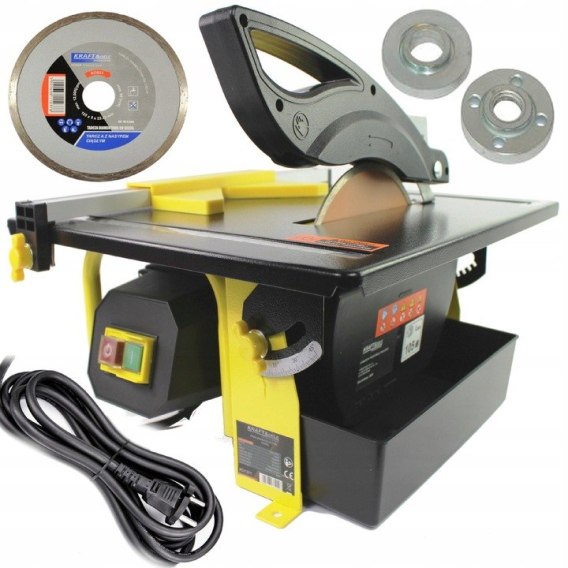 Piła stołowa KD1371 polskiej marki Kraft&Dele przeznaczona do cięcia płytek małych i średnich. Urządzenie pozwala na cięcie pod różnym kątem (45°-90°). Urządzenie służy do cięcia na mokro – podczas pracy tarcza jest mokra.