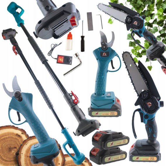 Piła Łańcuchowa 6'' +Sekator +2xAkumulator BIG AKKU 4AH +wysięgnik do 4m XL