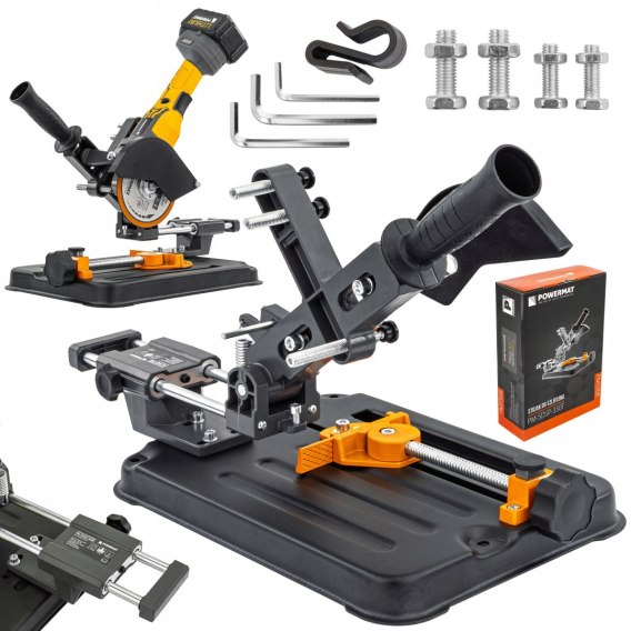 Wybierz stojak Powermat i zyskaj stabilne mocowanie oraz dokładne cięcia pod kątem 0–45°. Kompatybilność z tarczami 115–125 mm daje pełną swobodę pracy.