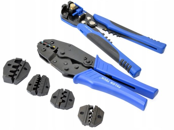 Szczypce z wymiennymi matrycami do zaciskania konektorów + wielofunkcyjny ściągacz do izolacji