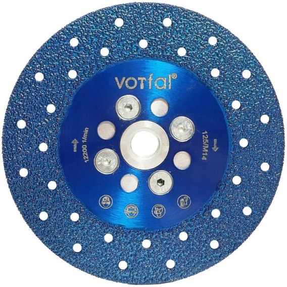 Diamentowa tarcza o średnicy 125 mm, z gwintem M14 przeznaczona jest do stosowania na szlifierce kątowej. Dla dłuższej żywotności tarczy zaleca się pracę na sucho i używanie szlifierki kątowej z regulacją obrotów. Tarcza diamentowa Vorfal, to jedne z najlepszych rozwiązań do szlifowania dla najbardziej wymagających fachowców. Produkowane są na najwyższym poziomie.