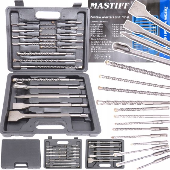 WIERTŁA DŁUTA DO BETONU SDS+ SDS Plus ZESTAW WIERTEŁ I DŁUT 17 ELEMENTÓW