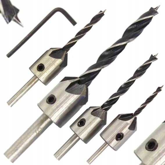 Wiertła do drewna z pogłębiaczem przeznaczone sądo wiercenia w drewnie, płytach wiórowych, mdf, sob i tworzywach sztucznych. Wiertła posiadają uchwyt walcowy. Wykonane zostały ze stali szybkotnącej HSS. Maksymalna średnica pogłębiacza 15 mm.