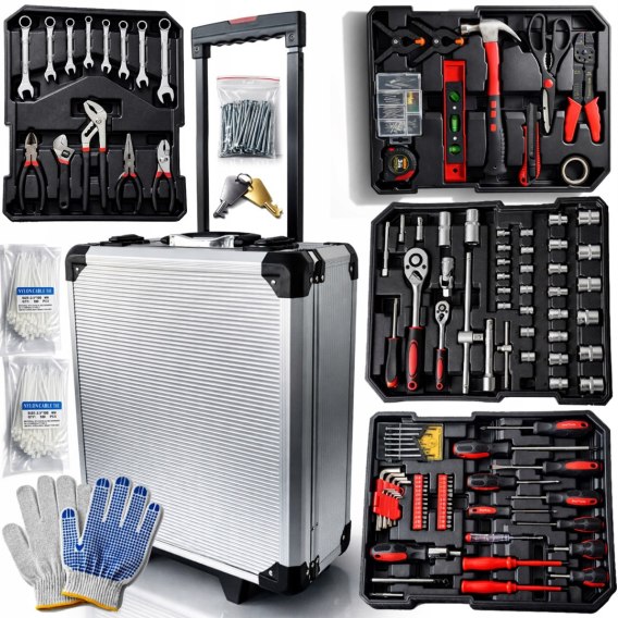Wysoka jakość wykonania – klucze, nasadki, szczypce i wkrętaki wykonano z trwałych, odpornych na zużycie materiałów, dzięki czemu zestaw posłuży przez wiele lat intensywnej pracy.
