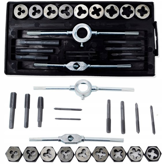 Zestaw gwintowników i narzynek przyda się do warsztatu ale również do garażu majsterkowicza. Teraz będziesz mógł zrobić gwint samodzielnie na wybranym elemencie konstrukcji. Dzięki narzynkom można wykonać gwinty zewnętrzne, a gwintownikom gwinty wewnętrzne.