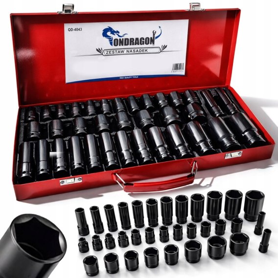 - Zawiera sześciokątne nasadki udarowe krótkie i długie w popularnych rozmiarach od 8 mm do 32 mm;