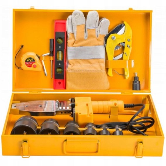 Zgrzewarka do rur plastikowych z wyświetlaczem LCD służy do zgrzewania rur i kształtek z polimerów (PE- polietylen, PP-polipropylen, PB-polibuten) stosowanych podczas wykonywania instalacji wody zimnej oraz ciepłej, a także centralnego ogrzewania.