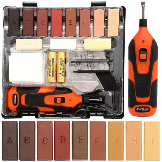 - zestaw umożliwia samodzielną szybką naprawę uszkodzeń paneli, mebli, drzwi i innych produktów z drewna i materiałów drewnopochodnych
