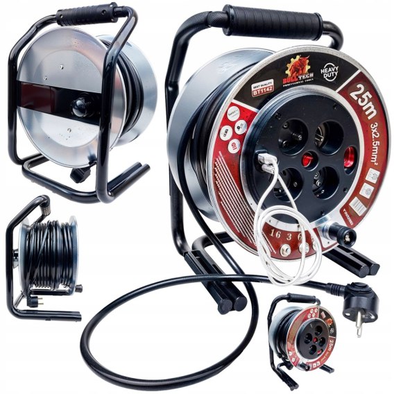 Przedłużacz to przedłużacz o solidnym wykonaniu. Tworzywo bębna METAL, stelaż metalowy. Urządzenie ma zastosowanie przy domowych pracach, w garażach, warsztatach, halach itp.