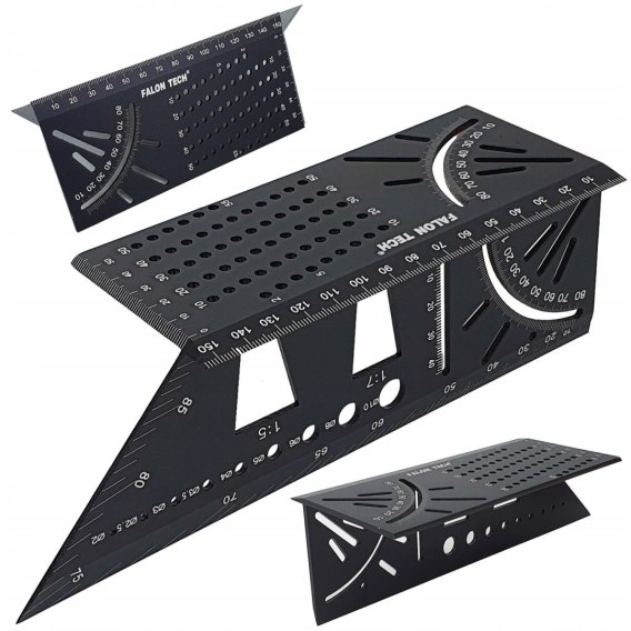 Jego prostokątna geometria pozwala na wykonywanie dokładnych pomiarów na narożnikach – idealnie sprawdza się podczas dokładnego przenoszenia kątów ukośnych na dwie przylegające do siebie strony obrabianego materiału.