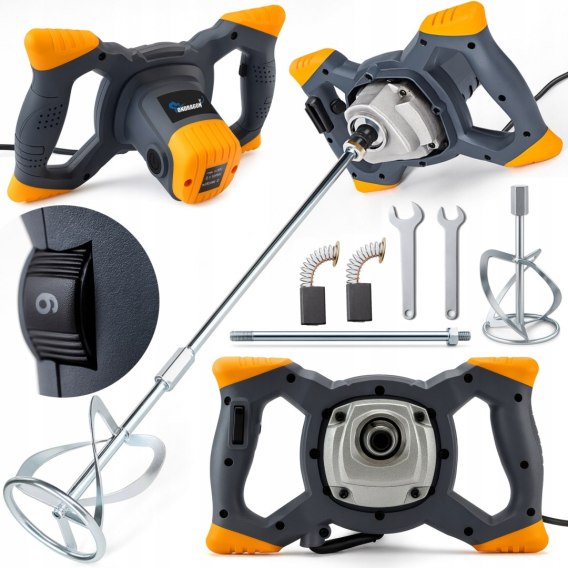 MIESZADŁO ELEKTRYCZNE 3150W to urządzenie elektryczne do użytku profesjonalnego. Jest to niezbędne narzędzie podczas prac budowlanych. Służy do mieszania pyłowych materiałów budowlanych takich jak: farby, zaprawy, żywice epoksydowe, kleje, tynki i podobne substancje. W zależności od konsystencji oraz ilości materiału, mieszadło może dać różny efekt końcowy. Przedmiot jest zasilany sieciowo, dlatego istnieje konieczność podłączenia pod stałe źródło prądu.