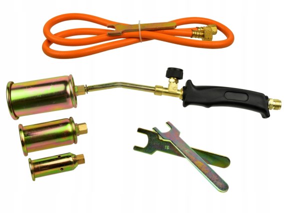 Profesjonalny palnik gazowy do podgrzewania i wypalania w zestawie z 3 dyszami.