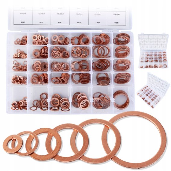 PODKŁADKI MIEDZIANE USZCZELKI MIEDŹ ZESTAW 300 SZT