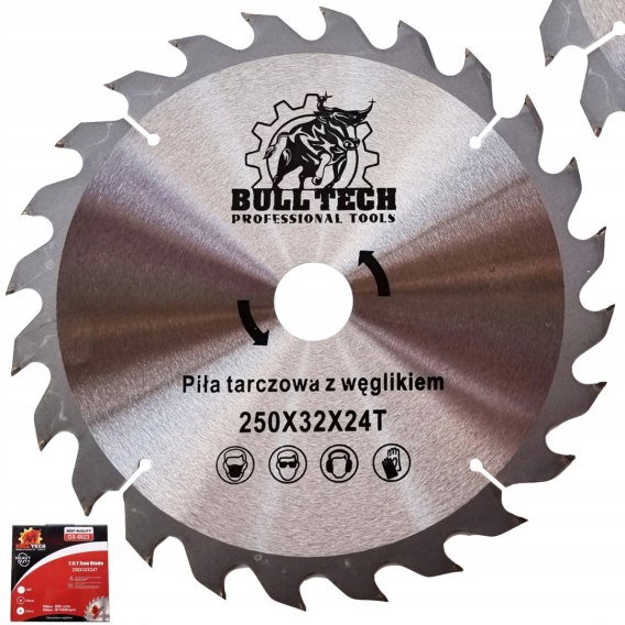Posiada standardowy dla tarczowych pilarek stołowych i ukosowych. Wymiar zewnętrzny tarczy to 250 mm. Otwór mocujący jest w rozmiarze 32 mm.